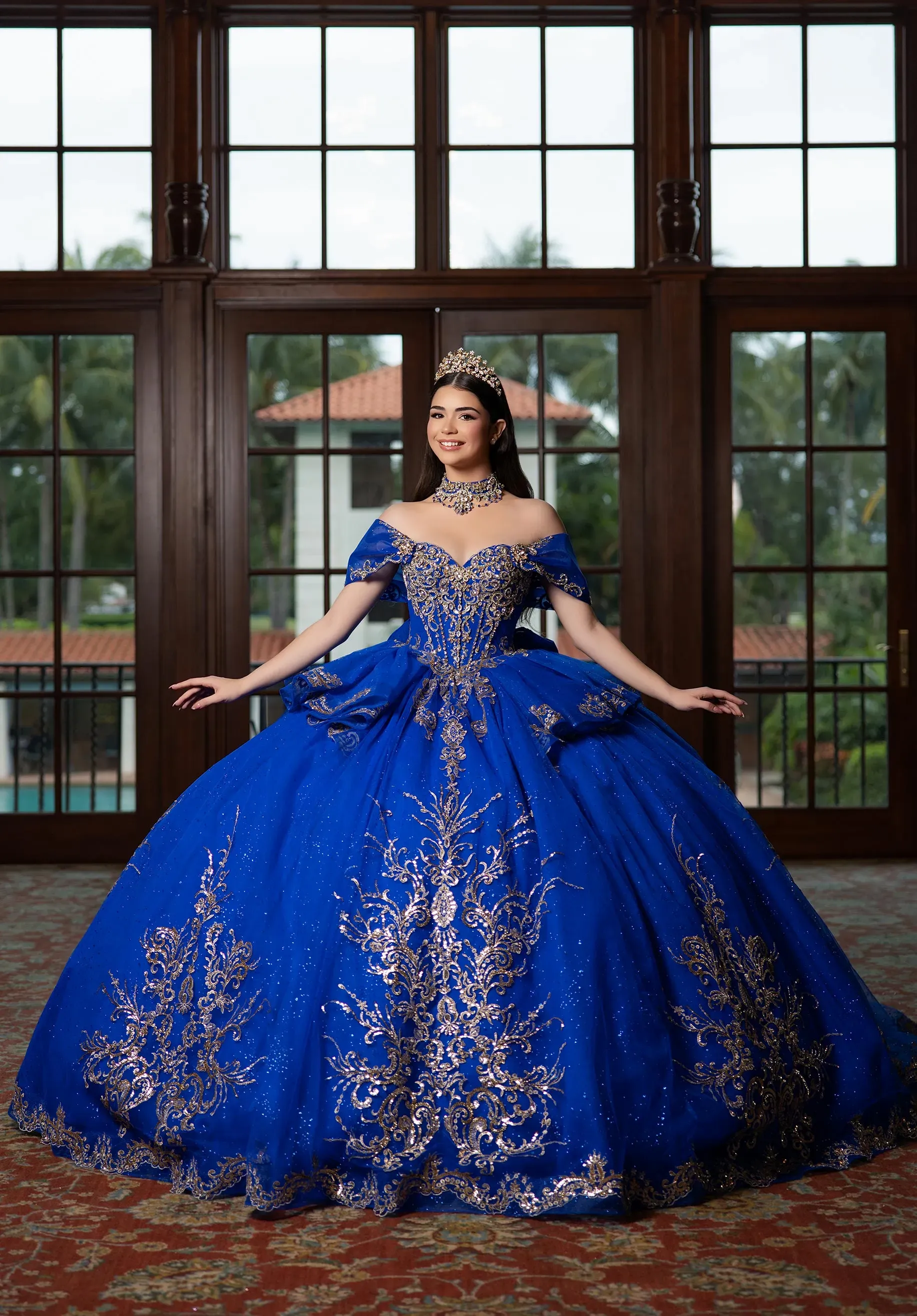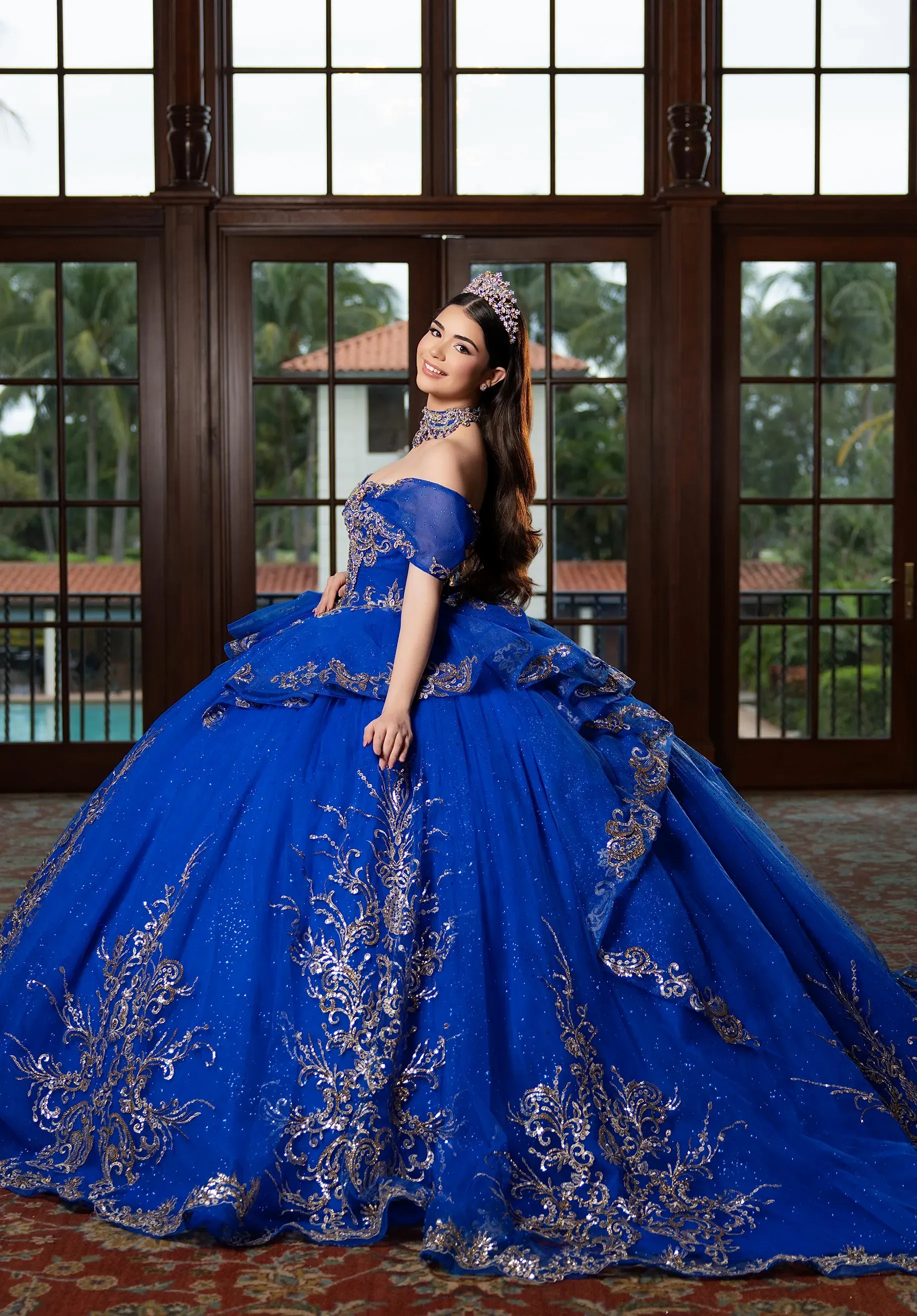 Sparkle like it?s your spotlight moment in our Brooklyn quinceañera dress. The sweetheart bodice shines with crystal-encrusted sequin lace and structured corset boning, giving you a glam, sculpted look that still feels effortlessly sweet. From the basque waist, the glitter tulle ball gown flares into full-volume magic, featuring a playful ruffle peplum and swirling sequin lace that twinkles with every step. A detachable back bow adds the perfect finishing flourish giving you a gown that's chic, feminine, and totally picture-perfect.